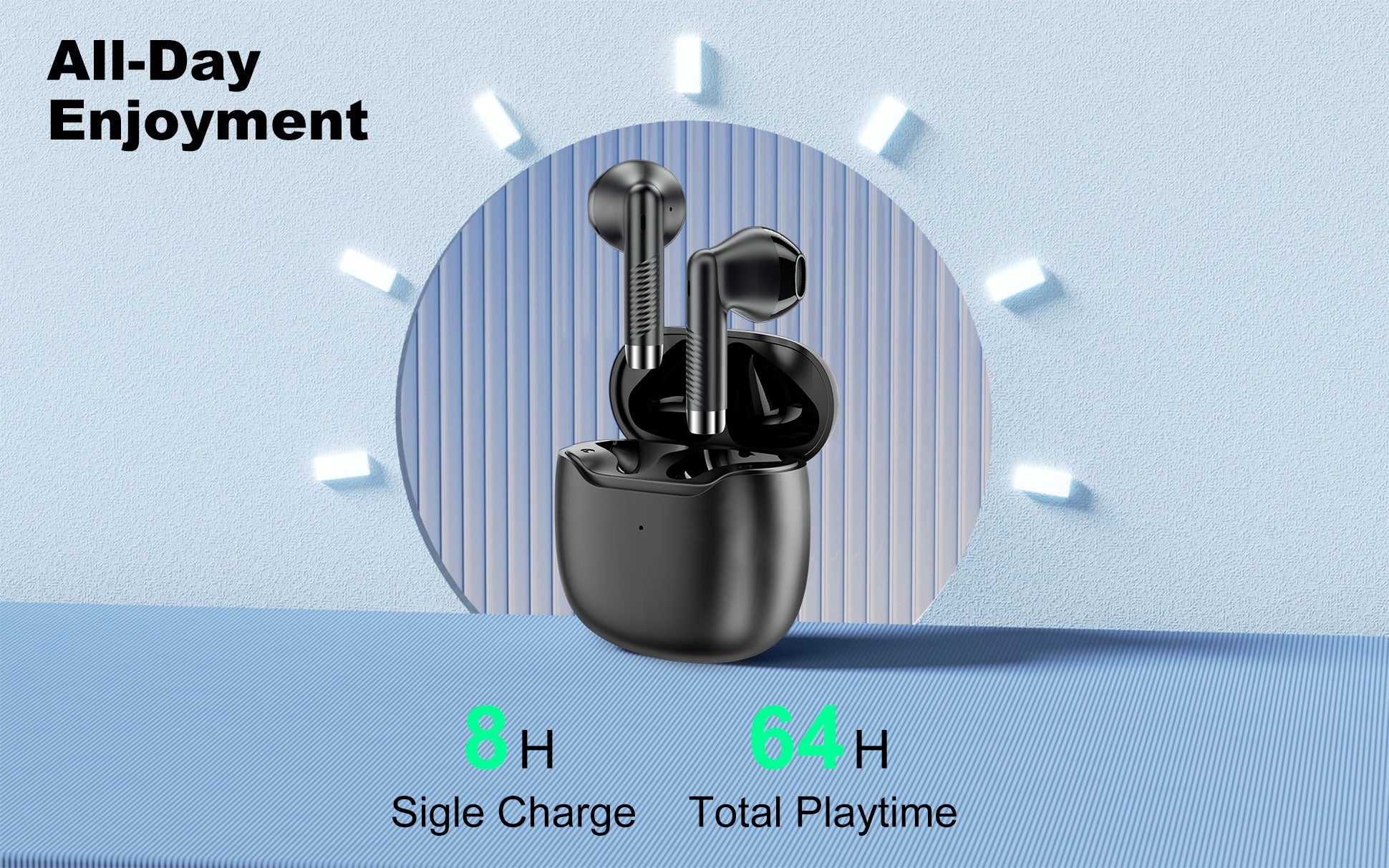 1.5-Hour Fast Charging, 64-Hour Long-Lasting Battery Life TWS Bluetooth Headphones—Embark on an Uninterrupted Music Journey.