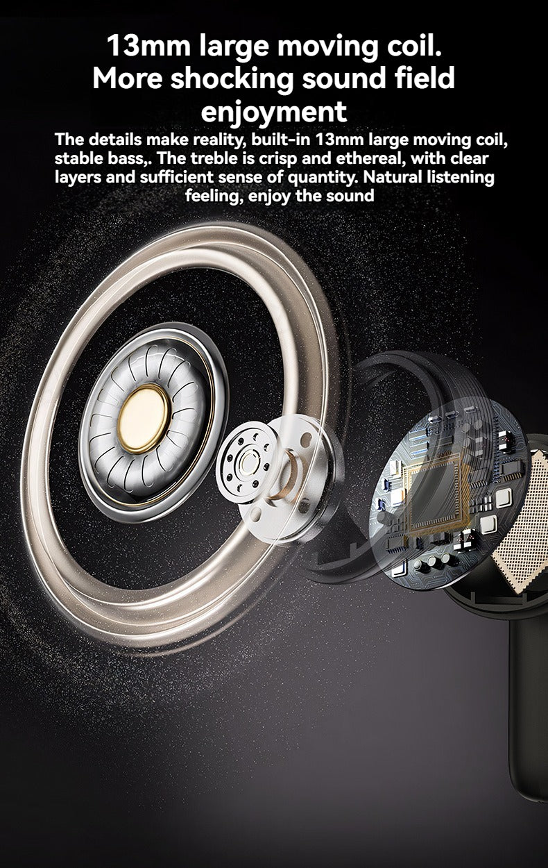 This is a TWS Bluetooth headset tailored for those who seek the ultimate auditory experience. Featuring industry-leading audio decoding technology, it breaks through traditional sound quality boundaries, opening a gateway to a realm of pure sound. Its elegant design, incorporating ergonomic principles, fits snugly around the ear, ensuring a comfortable and secure fit, seamlessly blending with your ears. Each listening experience is a private vocal feast, allowing you to find a tranquil haven amidst the hustle and bustle of daily life, enjoying the boundless joy of high-quality music and showcasing your refined taste in life.